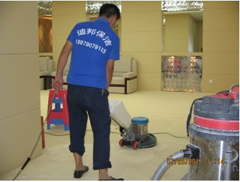 迪邦保潔公司人員正在為“新余市規劃展覽館”做地毯清洗。